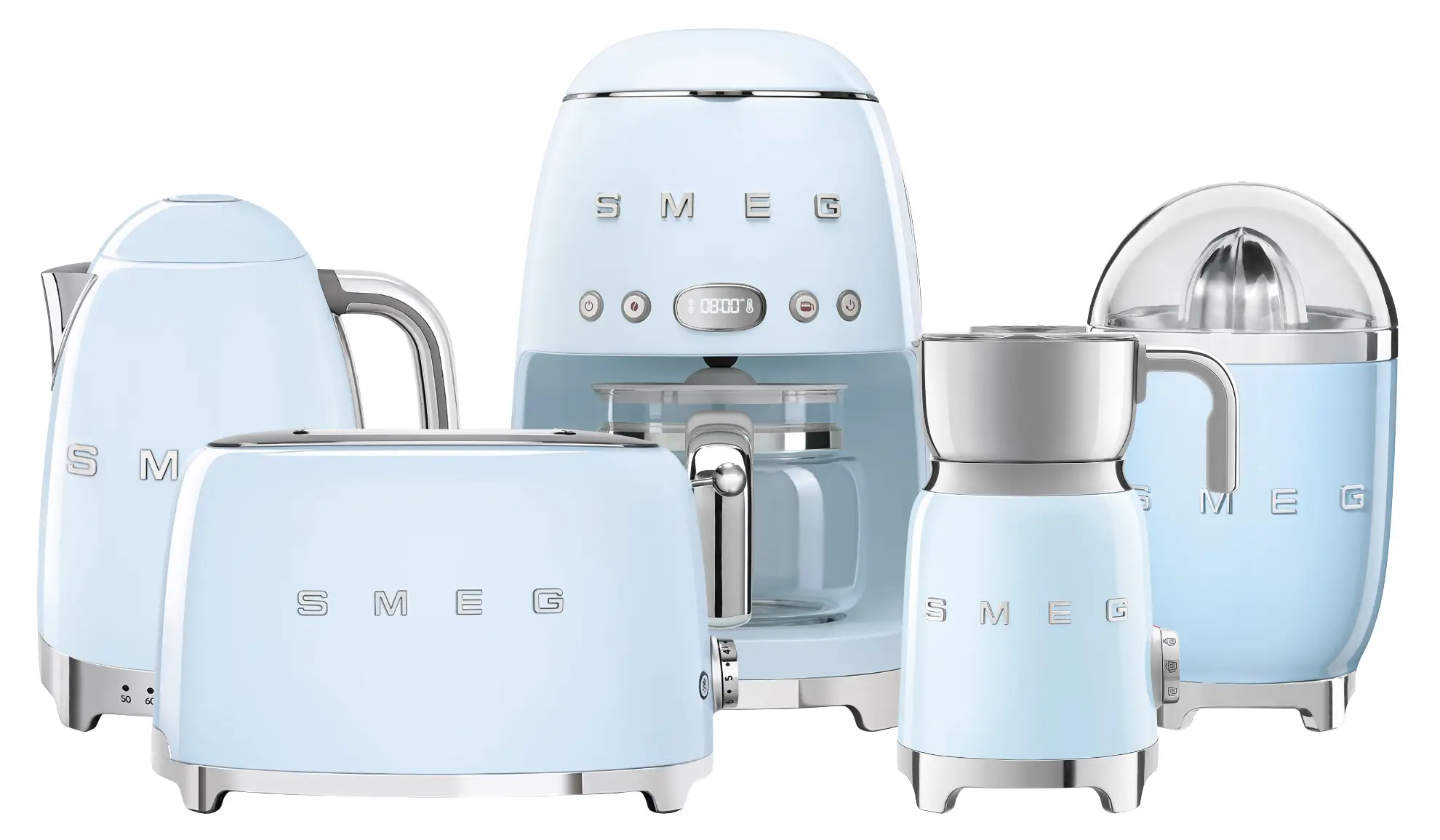 Zestawy produktów z ekspresami z linii 50’s Retro Style marki Smeg ułatwią i przyśpieszą przygotowywanie kawy lub śniadań - czajnik z regulacją temperatury umożliwi zagotowanie wody na herbatę, toster pozwoli zrobić grzanki, wyciskarka da opcję przygotowania świeżego soku, a spieniacz przyda się do łatwego uzyskiwania spienionego mleka. Konstrukcje urządzeń wykonane są z wysokiej jakości materiałów - m.in. tworzywa i stali nierdzewnej - i mają przemyślany design o opływowych kształtach i chromowanych podstawach, który w połączeniu z kolorowymi wykończeniami sprawia, że elegancko prezentują się one na blacie kuchennym, dzięki czemu można je przechowywać na widoku, gdy akurat nie będą używane.