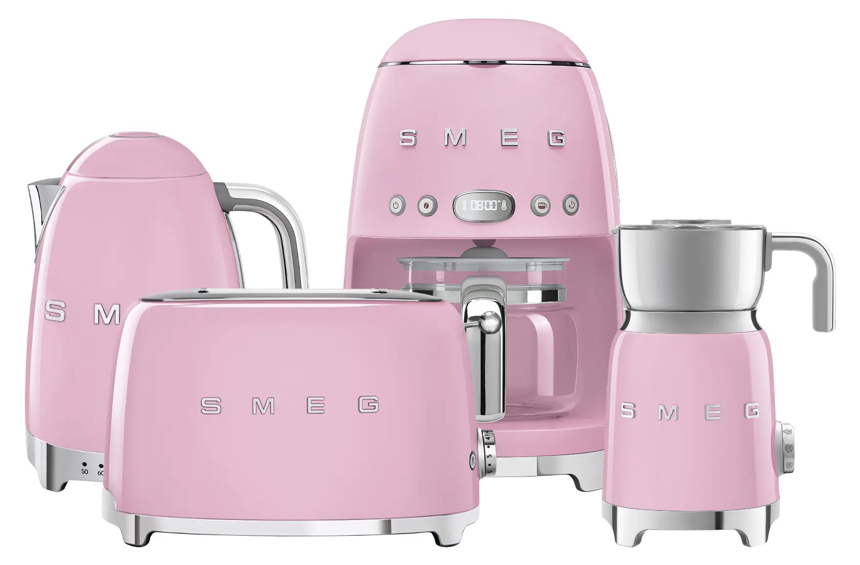 Zestawy produktów z ekspresami z linii 50’s Retro Style marki Smeg ułatwią i przyśpieszą przygotowywanie kawy lub śniadań - dołączony toster pozwoli zrobić grzanki, czajnik z regulacją temperatury umożliwi zagotowanie wody na herbatę, a spieniacz przyda się do uzyskiwania spienionego mleka. Konstrukcje urządzeń wykonane zostały z wysokiej jakości materiałów - m.in. tworzywa i stali nierdzewnej - i mają przemyślany design o opływowych kształtach i chromowanych podstawach, który w połączeniu z kolorowymi wykończeniami sprawia, że elegancko prezentują się one na blacie kuchennym - można je przechowywać na widoku, gdy akurat nie będą używane.