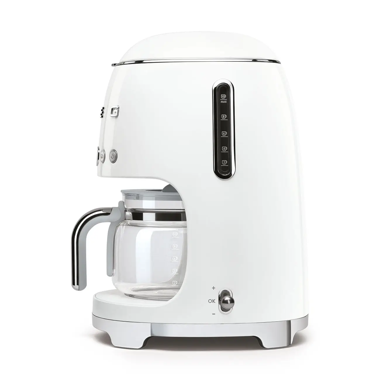 Ekspres do kawy DCF02 w kolorze białym został zaprojektowany z myślą o użytkownikach w ciągłym biegu, którzy jednak cenią sobie chwilę przyjemności z ulubionym napojem. Urządzenie wyposażone zostało w wyświetlacz LED, wyjmowany pojemnik na wodę (mieści ponad litr płynu - idealnie na 10 filiżanek), miarkę do kawy oraz filtr wielokrotnego użytku. Kilka praktycznych przycisków pozwala w intuicyjny sposób wybrać różne funkcje m.in. utrzymywania temperatury czy napełniania kilku filiżanek. Innowacyjny system grzewczy, uchwyt na filtr, możliwość regulacji temperatury i twardości wody wraz ze wskaźnikiem obwieszczającym konieczność odkamienienia sprawiają, że możesz być spokojny o bezpieczeństwo swoje i swojego ekspresu. Stabilność urządzeniu zapewniają z kolei antypoślizgowe nóżki. Elementy narażone na kontakt z płynem, w tym podstawka na filiżanki oraz pasywny podgrzewacz są zupełnie odporne na zardzewienia. Chromowana podstawa i dysza spieniająca stanowią doskonałe wykończenie projektu i nadają całości futurystycznego, ale i eleganckiego charakteru.