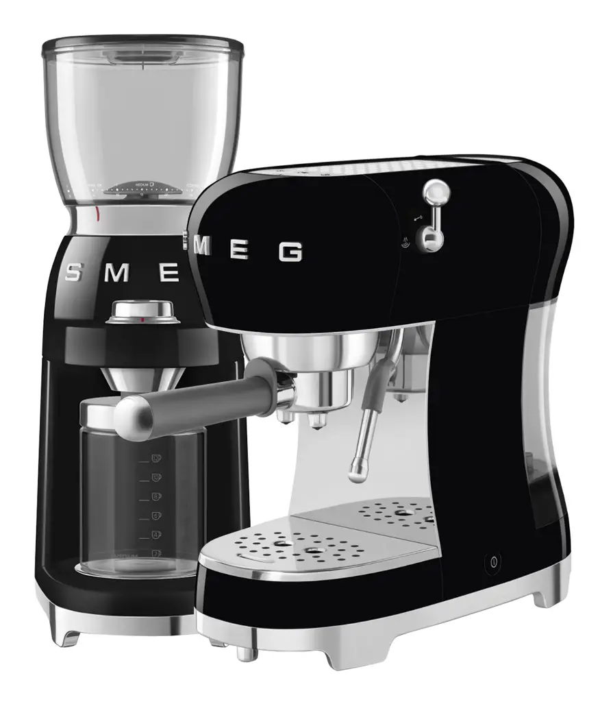 Produkty z linii 50's Retro Style od marki SMEG wyróżniają się pełną elegancji i stylu prezentacją, doskonale wpasowując się w różne wnętrza urządzone w stylu retro i nie tylko. Jednocześnie świetnie spełniają swoje zadania, dzięki swoim funkcjom i wysokiej jakości. Oferowane w naszym sklepie mniejsze i większe zestawy pozwalają na dobranie urządzeń pod indywidualne potrzeby. Takim zestawem jest np. prezentowany zestaw kawowy złożony z ekspresu i młynka w czarnym kolorze, który doskonale nada się do uzyskiwania pysznej, pełnej aromatu i smaku kawy ze świeżo mielonych ziaren.