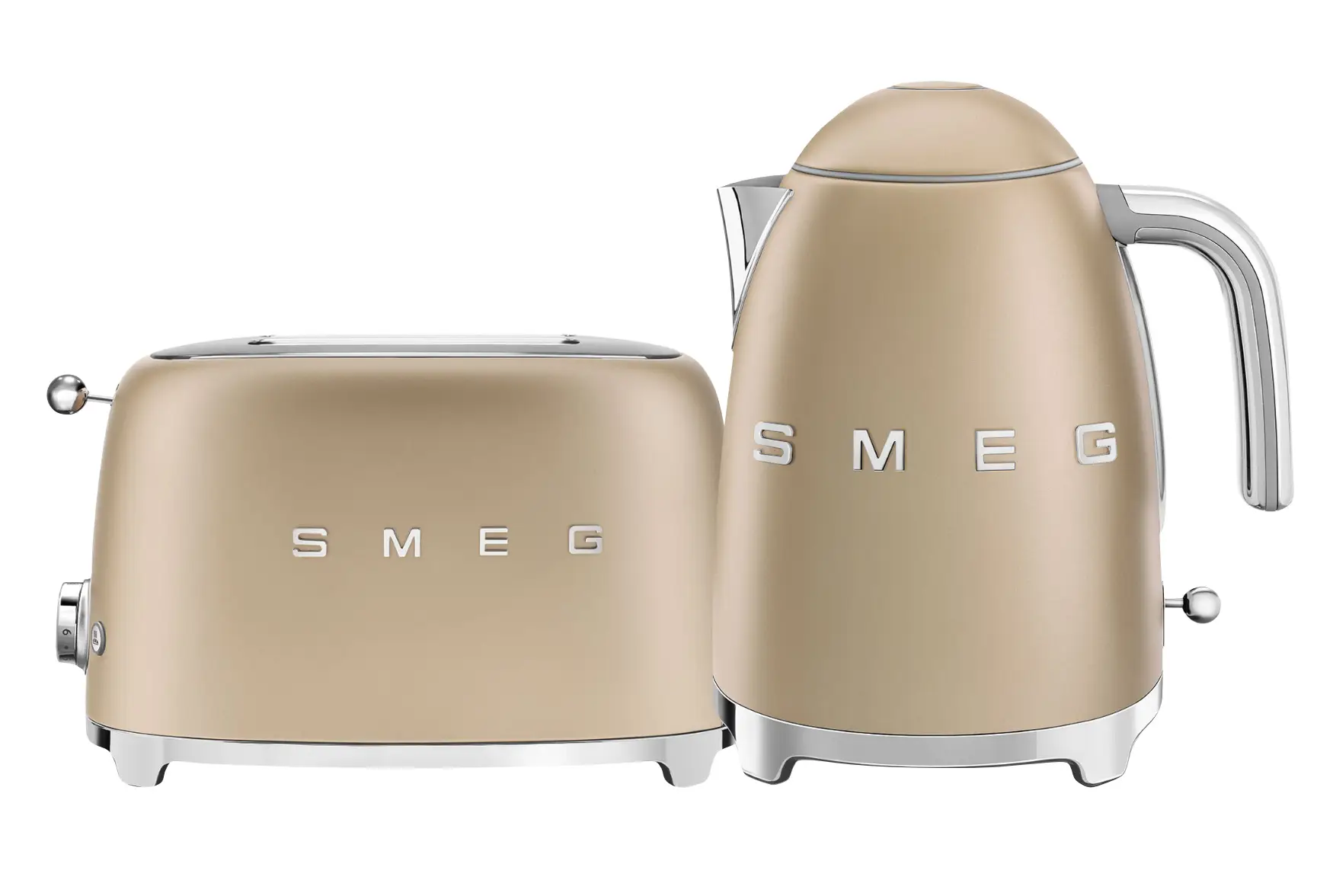 Oferowany zestaw śniadaniowy produktów z linii 50’s Retro Style marki Smeg to idealny duet ułatwiający przygotowanie porannego posiłku. Wykonane z wysokiej jakości materiałów - m.in. tworzywa i stali nierdzewnej - urządzenia dzięki opływowym kształtom, chromowanym podstawom oraz matowemu kolorowi szampana rewelacyjnie zaprezentują się na blacie kuchennym - można je więc będzie przechowywać na widoku, gdy akurat nie będą używane.