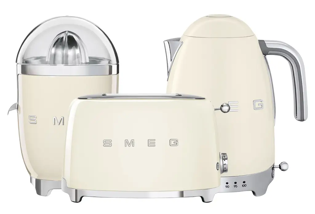 Oferowany zestaw śniadaniowy produktów z linii 50’s Retro Style marki Smeg ułatwi i przyśpieszy przygotowywanie codziennych posiłków z dodatkiem świeżo wyciskanego soku. Wykonane z wysokiej jakości materiałów - m.in. tworzywa i stali nierdzewnej - urządzenia mają przemyślany design o opływowych kształtach i chromowanych podstawach, który w połączeniu z delikatnym kremowym kolorem sprawia, że świetnie zaprezentują się one na blacie kuchennym - można je będzie przechowywać na widoku, gdy akurat nie będą używane.