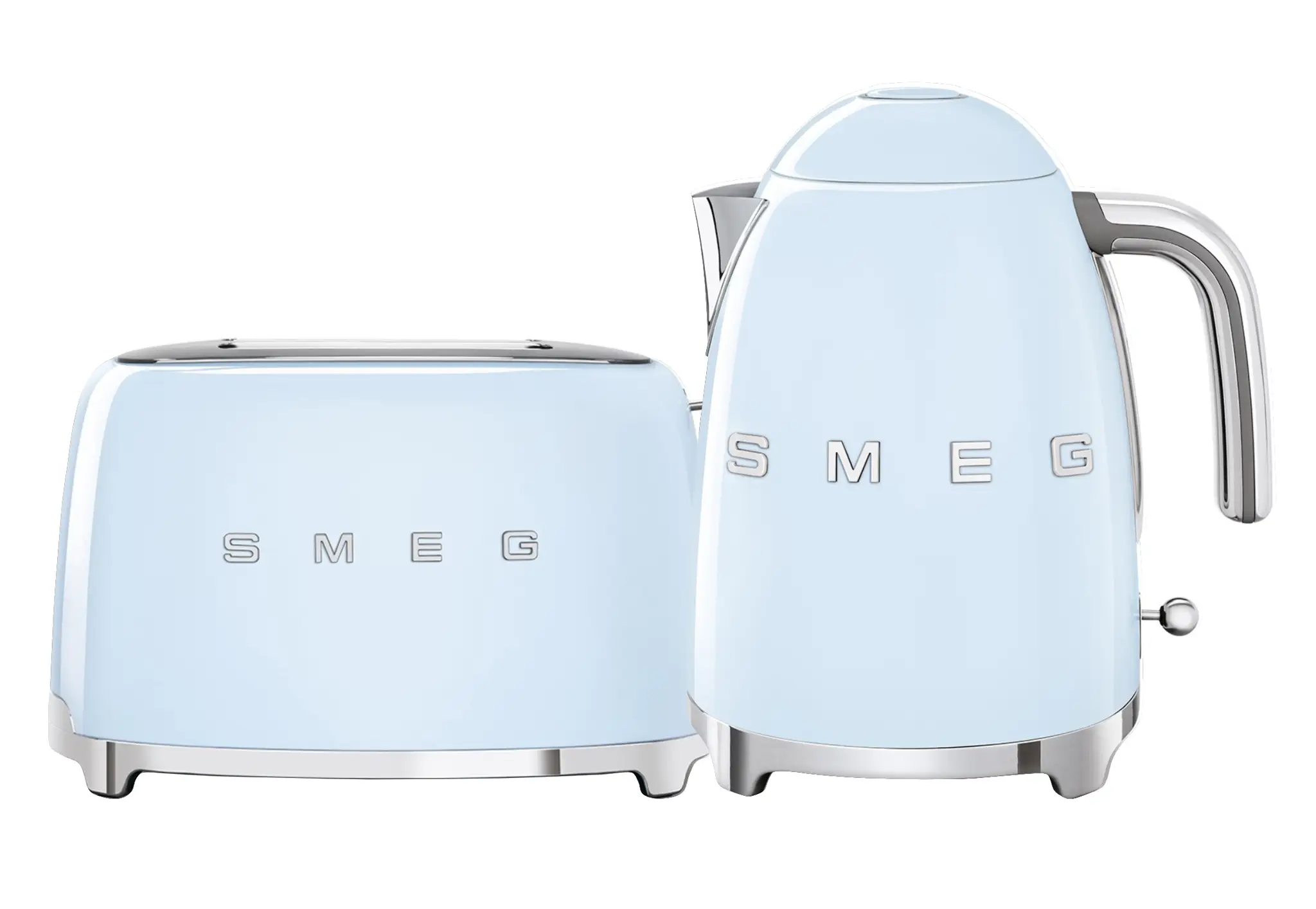 Oferowany zestaw śniadaniowy produktów z linii 50’s Retro Style marki Smeg to doskonały duet ułatwiający przygotowanie porannego posiłku. Wykonane z wysokiej jakości materiałów - m.in. tworzywa i stali nierdzewnej - urządzenia dzięki opływowym kształtom, chromowanym podstawom oraz błękitnemu kolorowi w pastelowym odcieniu wspaniale zaprezentują się na blacie kuchennym, uzupełniając nowoczesne wystroje - można je będzie przechowywać na widoku, gdy akurat nie będą używane.