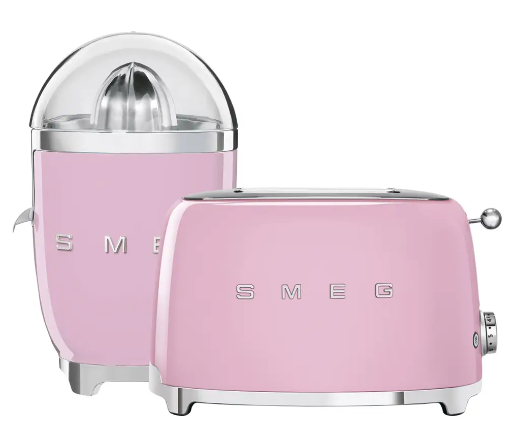 Prezentowany zestaw śniadaniowy produktów z linii 50’s Retro Style marki Smeg to doskonały duet ułatwiający przygotowanie porannego posiłku z dodatkiem świeżo wyciskanego soku. Wykonane z wysokiej jakości materiałów - m.in. tworzywa i stali nierdzewnej - urządzenia dzięki opływowym kształtom, chromowanym podstawom oraz pastelowemu jasnoróżowemu kolorowi elegancko zaprezentują się na blacie kuchennym, uzupełniając współczesne wystroje - można je więc będzie przechowywać na widoku, gdy akurat nie będą używane.