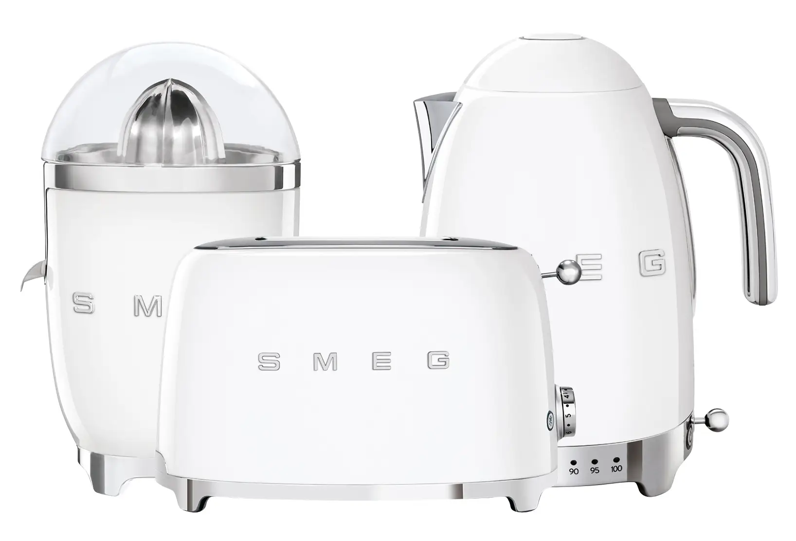 Oferowany zestaw śniadaniowy produktów z linii 50’s Retro Style marki Smeg ułatwi i przyśpieszy przygotowywanie codziennych posiłków z dodatkiem świeżo wyciskanego soku. Wykonane z wysokiej jakości materiałów - m.in. tworzywa i stali nierdzewnej - urządzenia mają przemyślany design o opływowych kształtach i chromowanych podstawach, który w połączeniu z neutralnym białym kolorem sprawia, że świetnie zaprezentują się one na blacie kuchennym - można je będzie przechowywać na widoku, gdy akurat nie będą używane.