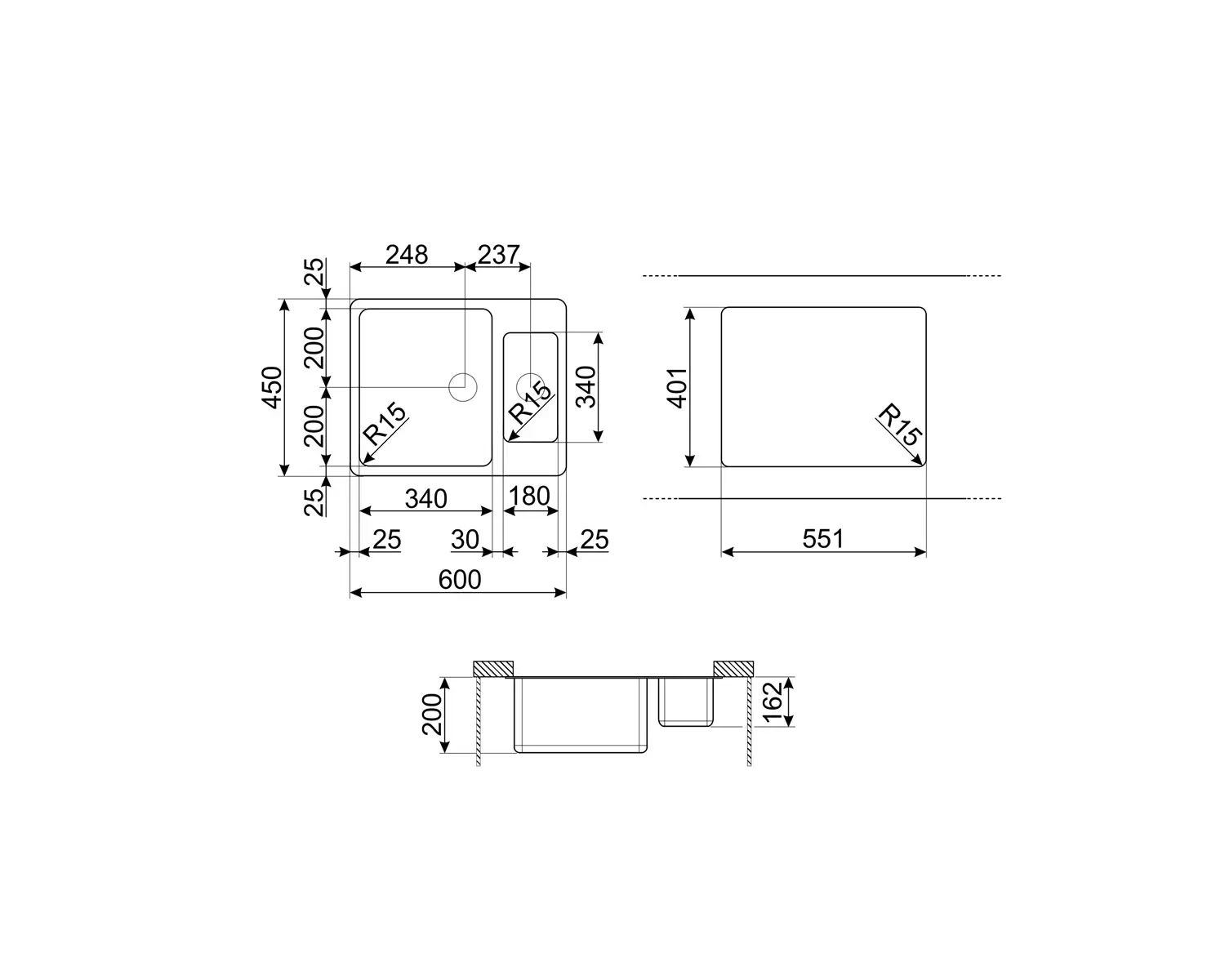 Smeg - Zlewozmywak podwieszany VSTR4018-2 Universale Stal nierdzewna