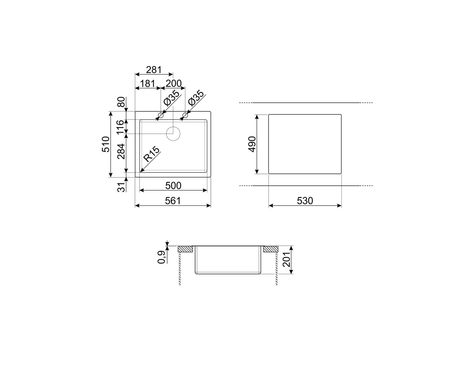 Smeg - Zlewozmywak wpuszczany w blat LFT50RS Universale Stal nierdzewna