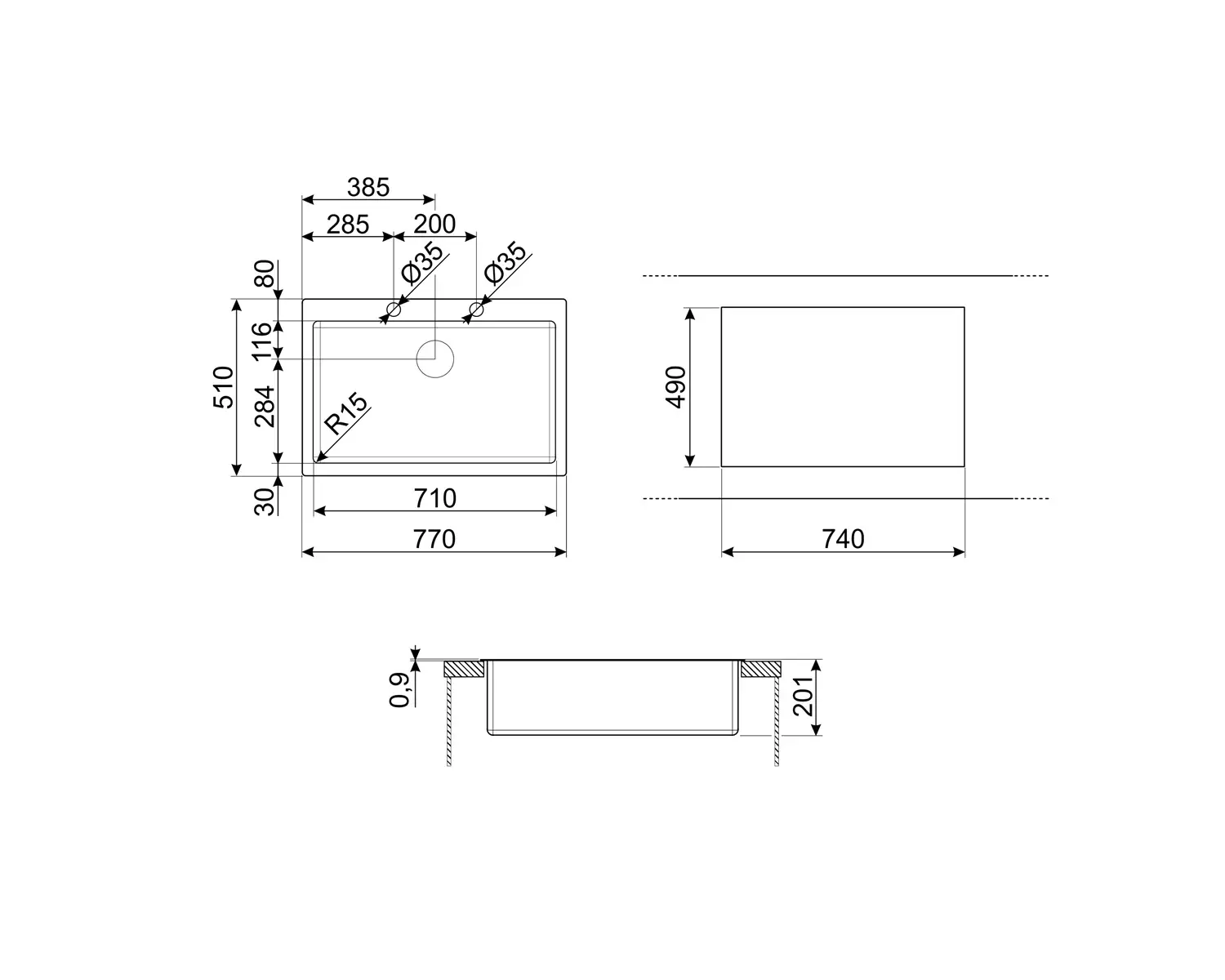 Smeg - Zlewozmywak wpuszczany w blat LFT77RS Universale Stal nierdzewna
