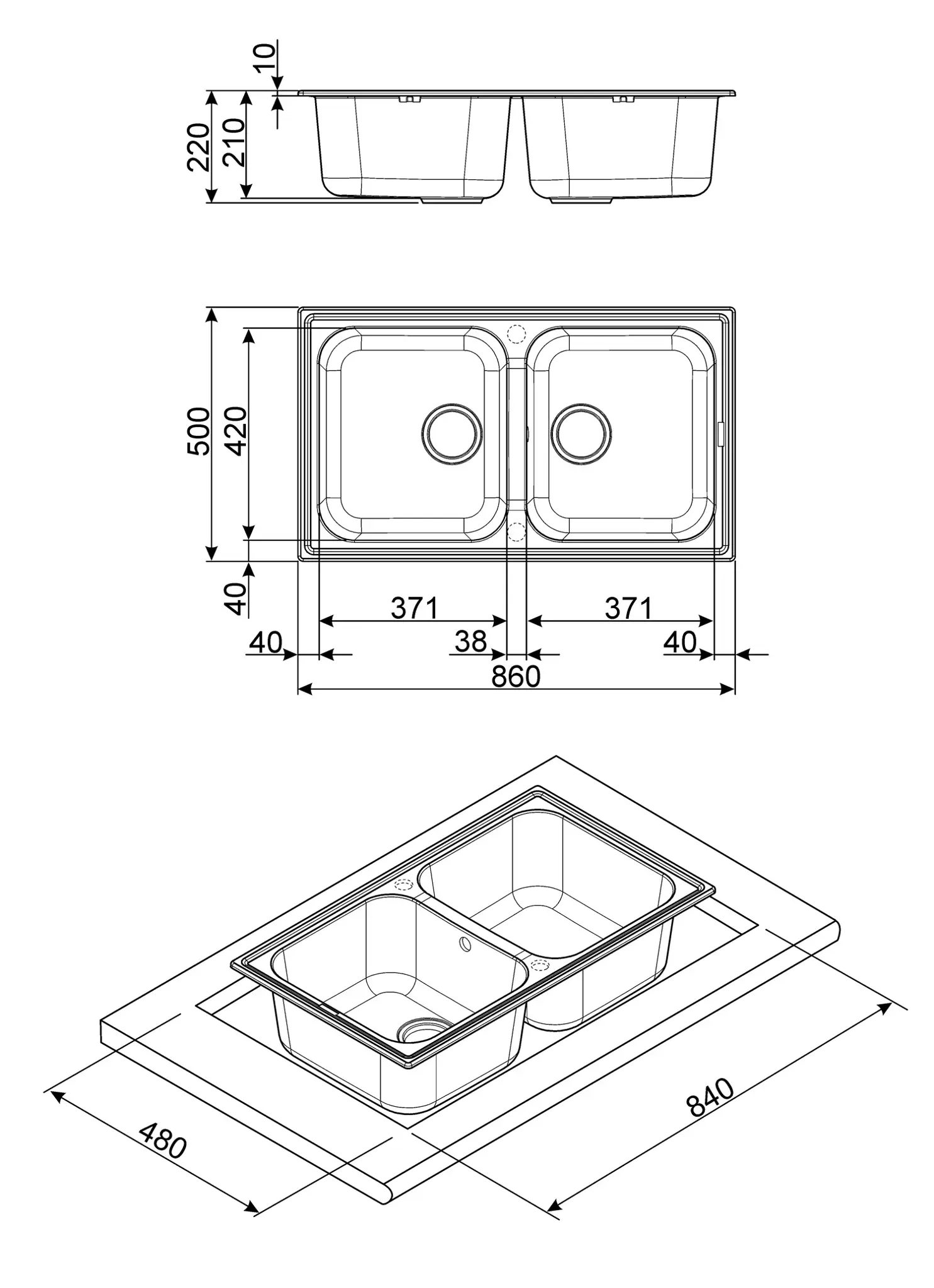 Zlewozmywak wpuszczany w blat LZ862A2 Universale Antracyt