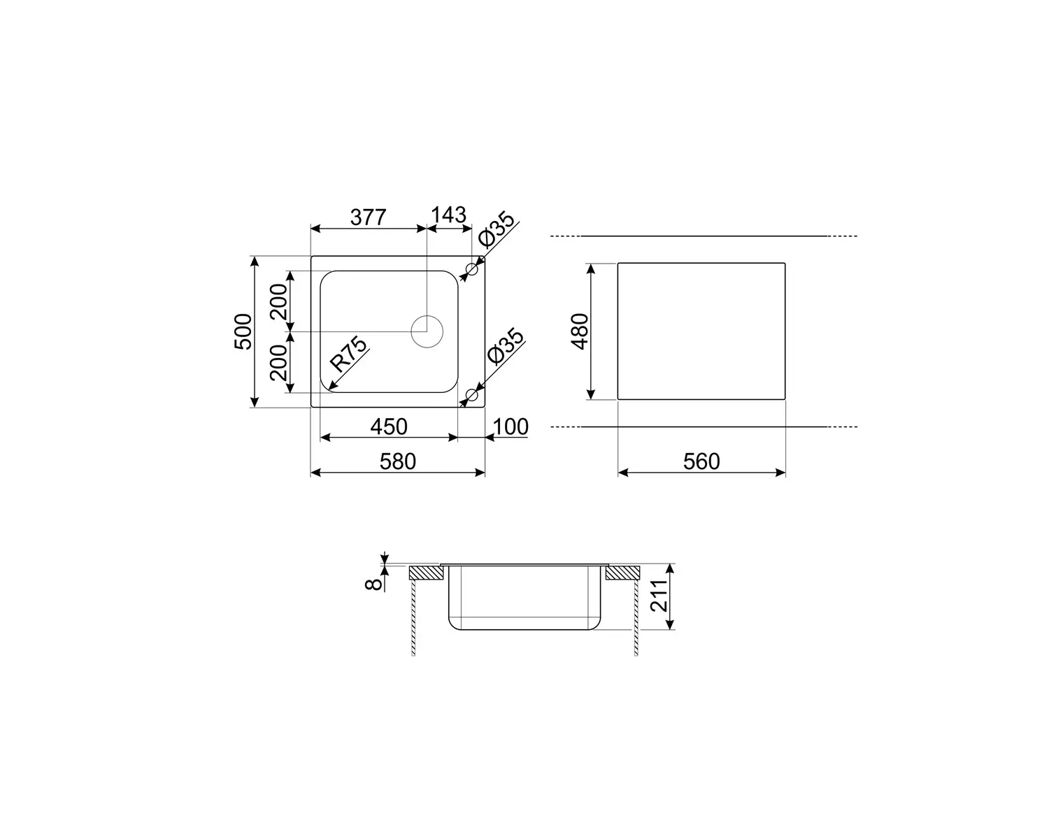 Smeg - Zlewozmywak wpuszczany w blat VS45-P3 Universale Stal nierdzewna