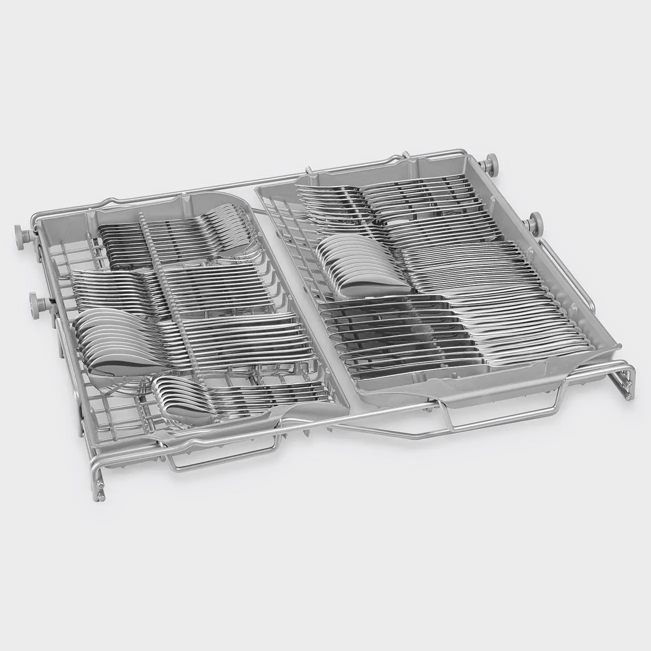 - Dolny kosz ze składanymi półkami wraz z specjalnymi wkładkami, optymalizującymi proces suszenia