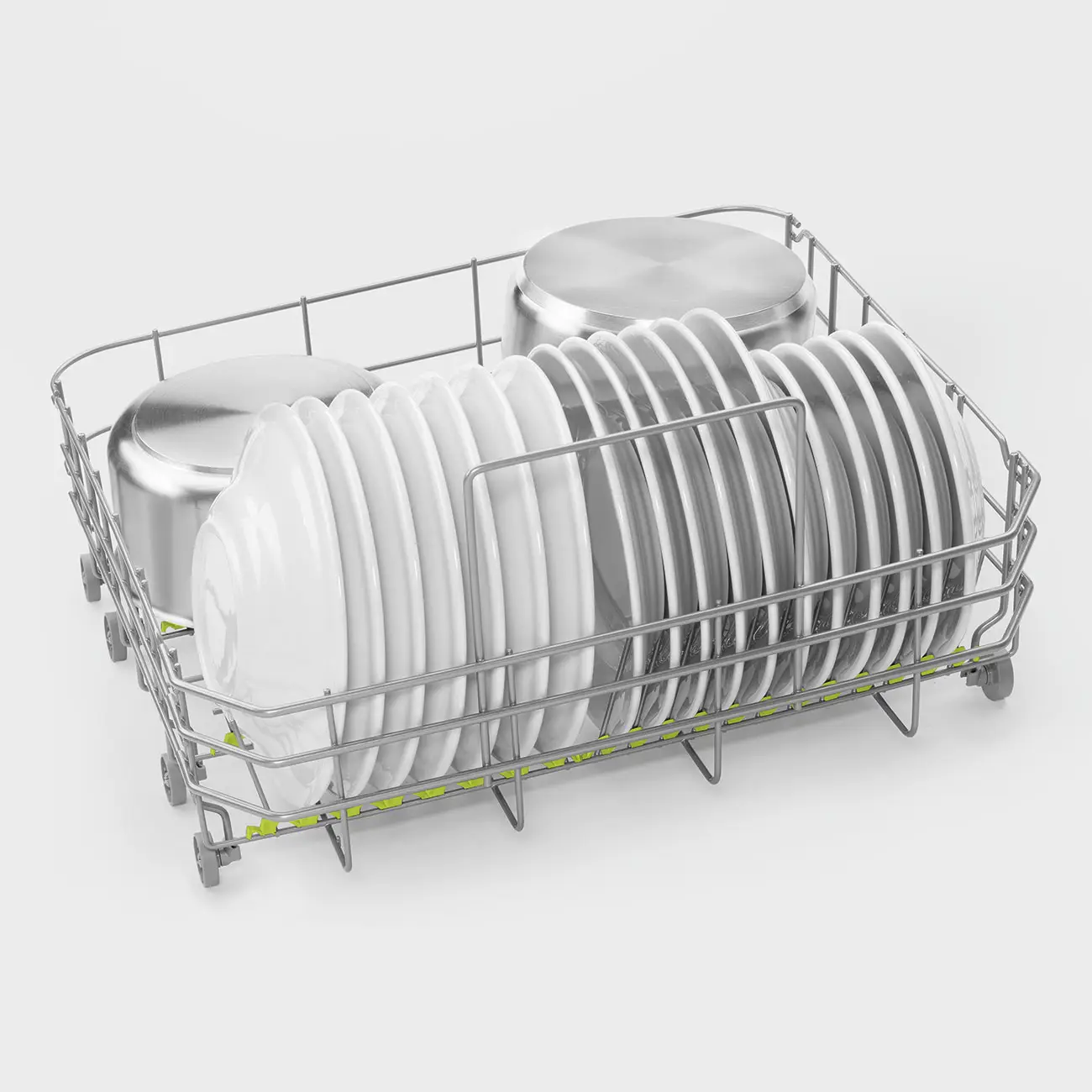 - Dolny kosz ze specjalnymi wkładkami, optymalizującymi proces suszenia: Tak