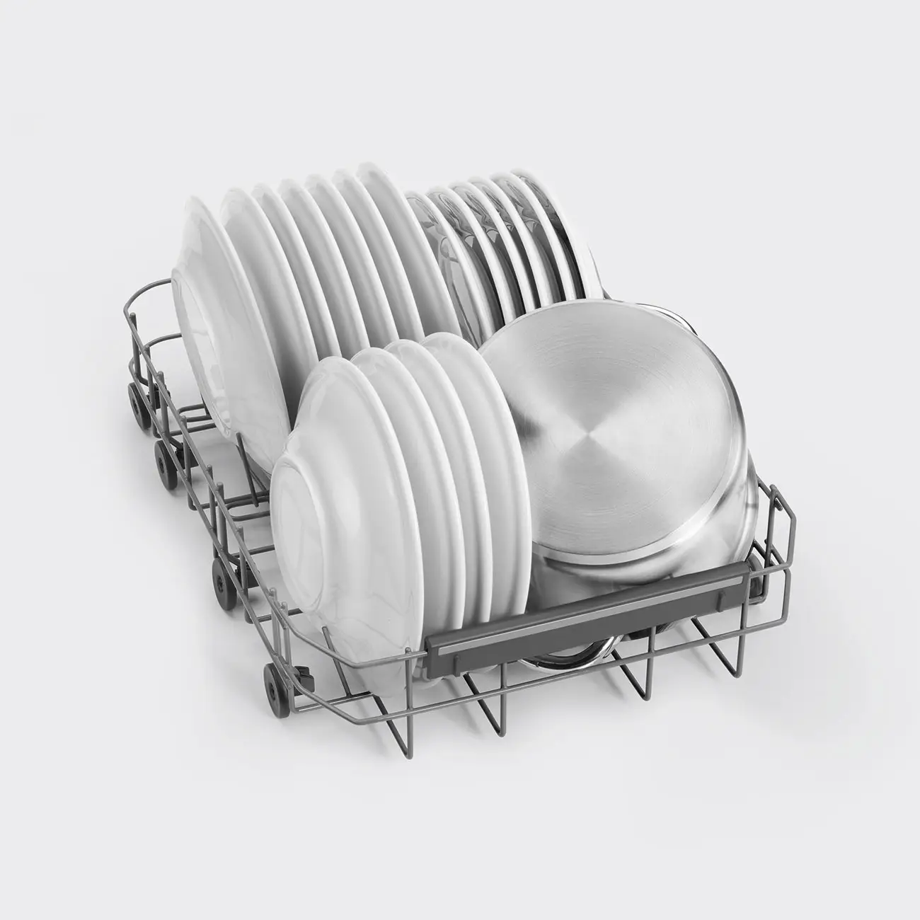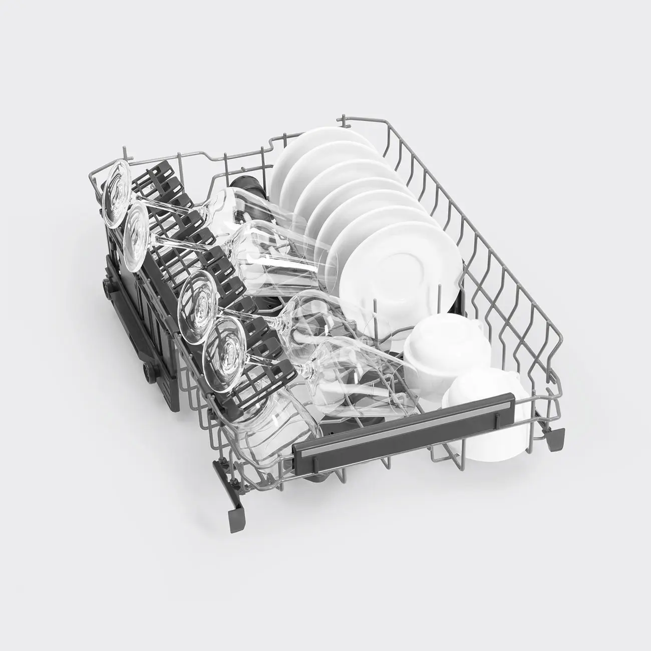 SMEG ST4523DIN to bardziej zaawansowana zmywarka do zabudowy o szerokości 45 cm, która oferuje większą pojemność (10 kompletów) oraz znacznie więcej funkcji niż podstawowe modele. To dobry wybór do mniejszych kuchni, ale dla osób, które chcą już wyższy komfort użytkowania i większą elastyczność.
