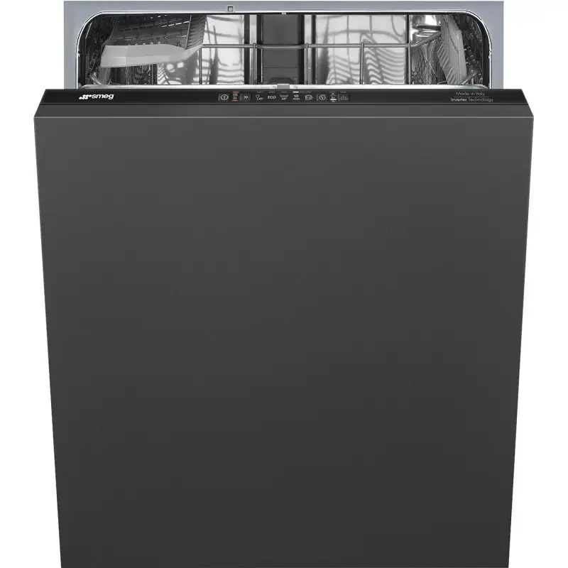 Zmywarka do zabudowy STL271DSH od firmy Smeg z czarnym panelem sterowania jest bardzo prosta w obsłudze, posiada 5 konkretnych programów, które spokojnie sprawdzą się podczas codziennego użytku. Wysoka przestrzeń górnego oraz dolnego kosza pozwoli na umycie wysokich szklanek, talerzy lub garnków.