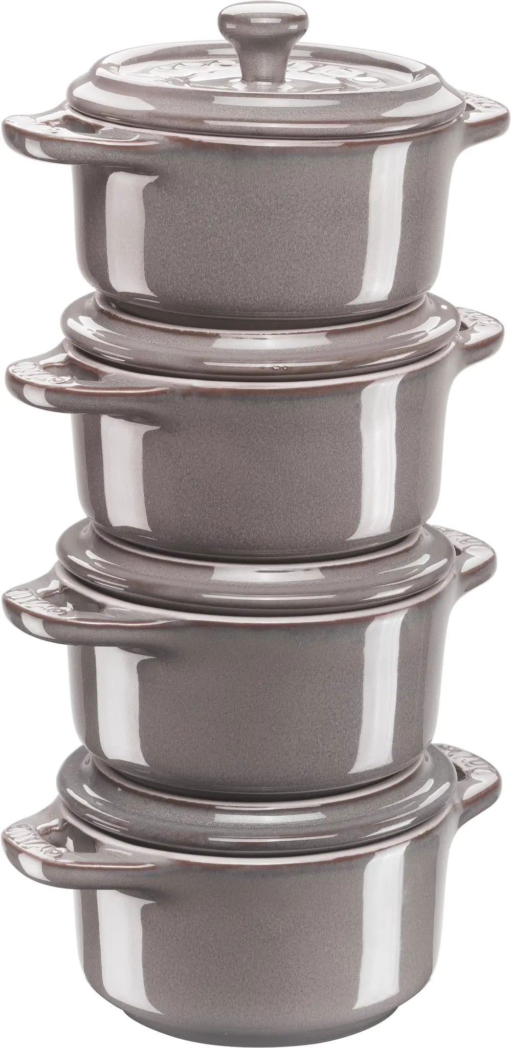 Staub - 4x Mini Cocotte okrągły Gift Giving 10 cm, antyczny grafitowy
