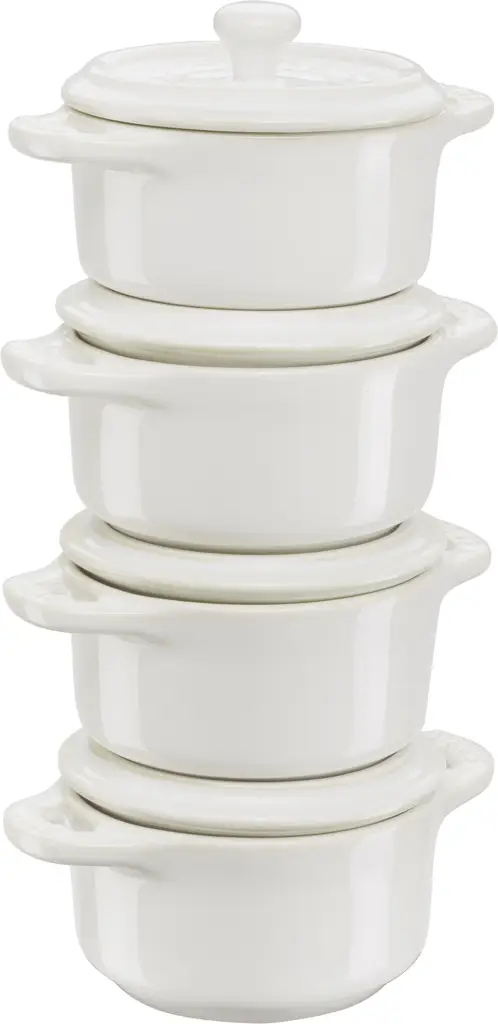 Staub - 4x Mini Cocotte okrągły Gift Giving 10 cm, kość słoniowa