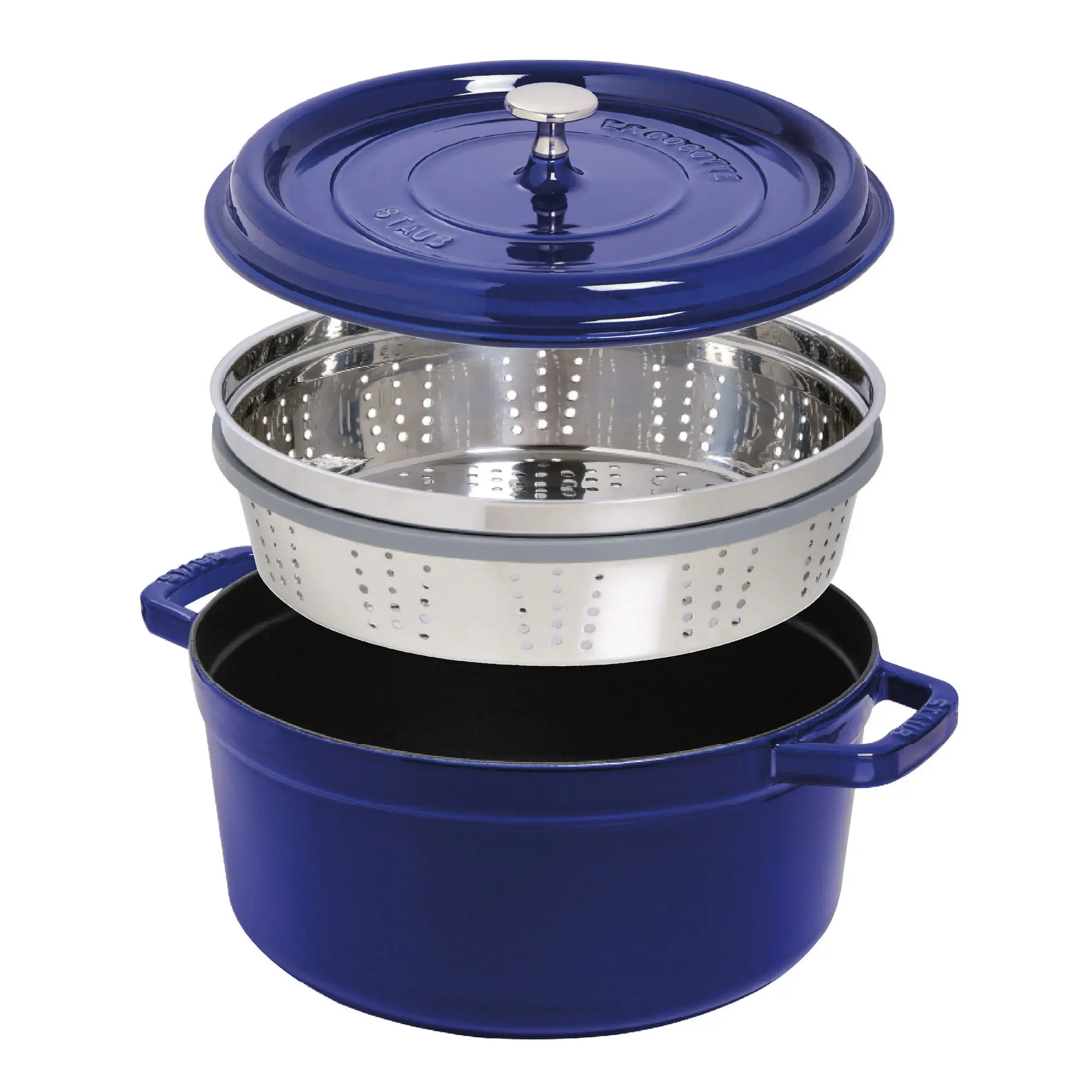 Staub - Garnek żeliwny okrągły z wkładem La Cocotte 5,25 L Niebieski
