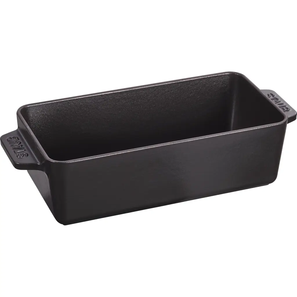 Prostokątna forma do pieczenia 23 cm powstała z przeznaczeniem do wypieku ciast, a także zapiekanek. Wykonana została z żeliwa. Wyposażona jest w dwa uchwyty, łatwe w trzymaniu nawet w rękawicach. Czarna, matowa emalia wewnątrz i na powierzchni chroni materiał przed wpływem z zewnątrz.