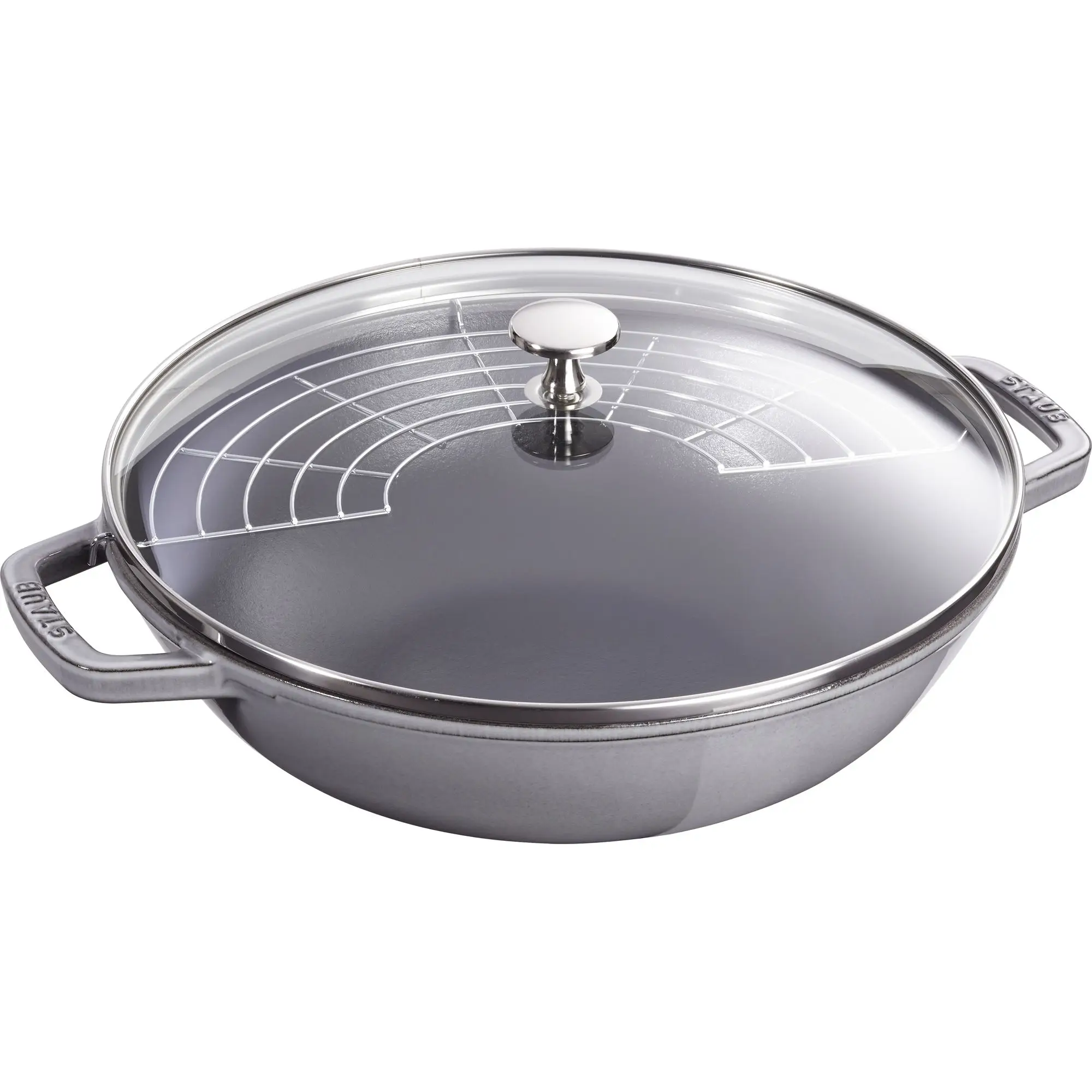Staub - Wok żeliwny z pokrywką 30 cm grafitowy szary