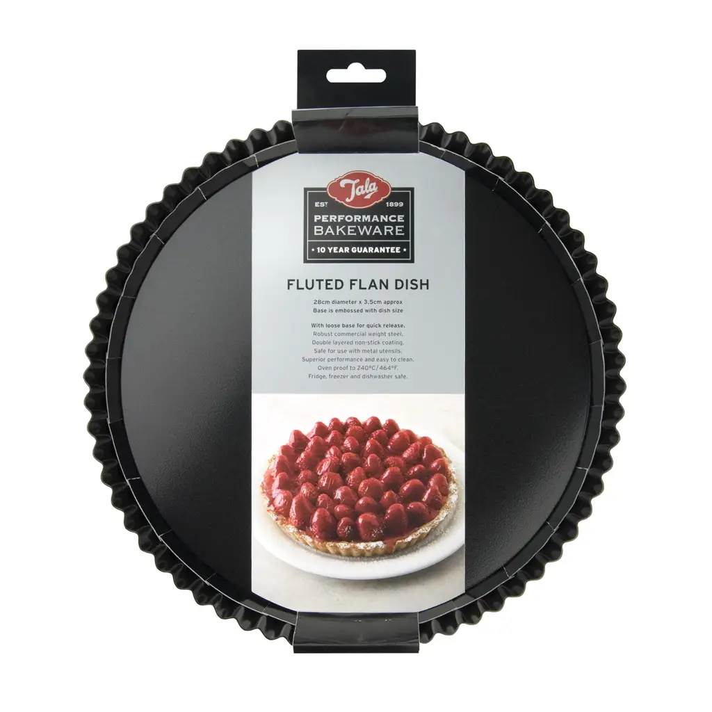 Ciężka, solidna, świetnej jakości forma marki Tala ma średnicę 28 cm. Najlepiej nadaje się do pieczenia tart - zarówno słodkich, jak i wytrawnych. Blacha posiada wyjmowane dno, dzięki czemu ciasto nie odkształci się w procesie wyciągania. Forma ma karbowane boki o wysokości 3,5 cm.