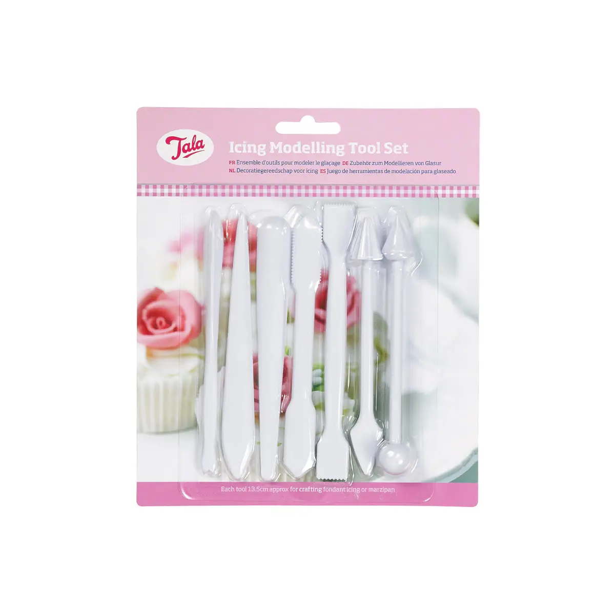 Zestaw 7 narzędzi marki Tala zawiera przyrządy do modelowania lukru lub marcepanu. Każde narzędzia ma dwie różne końcówki, za pomocą których stworzysz niepowtarzalne i oryginalne dekoracje na swoje desery. Dostosowana długość narzędzi i ich wysoka jakość pozwala wykonać nawet najmniejsze elementy dekoracji.
