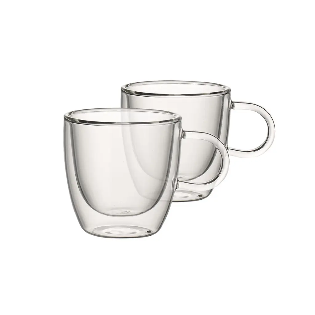 Szklanki zostały wykonane z wysokiej jakości szkła borokrzemowego. Dzięki izolacyjnej właściwości dwuściennej konstrukcji napoje dłużej zachowają swoją temperaturę. Mały rozmiar sprawdzi się do serwowania kawy espresso.