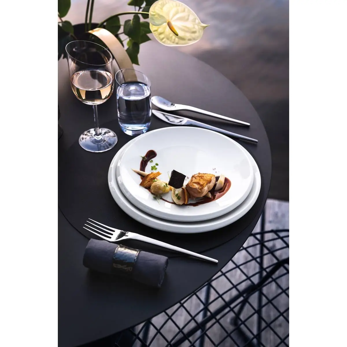 Kolekcja NewMoon o unikalnym wzornictwie wyróżnia się ekspresyjnością, jest minimalistyczna, a zarazem funkcjonalna. Sprawdzi się w codziennym użytkowaniu oraz podczas specjalnych okazji. Charakterystyczna krawędź w kształcie wąskiego półksiężyca i wynikająca z tego niewielka asymetria odzwierciedlają klarowny charakter tej kolekcji. Sztućce z serii NewMoon charakteryzują się innowacyjnym wzornictwem, które silnie oddziałuje na zmysł dotyku.