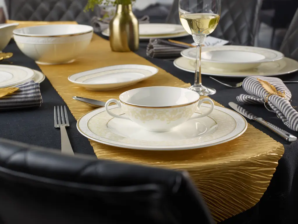 Bulionówka o pojemności 400 ml z serii Ivoire od Villeroy & Boch jest częścią eleganckiego serwisu, gdzie stół emanuje ciepłem, a jego aranżacja jest zarazem klasyczna jak i współczesna.