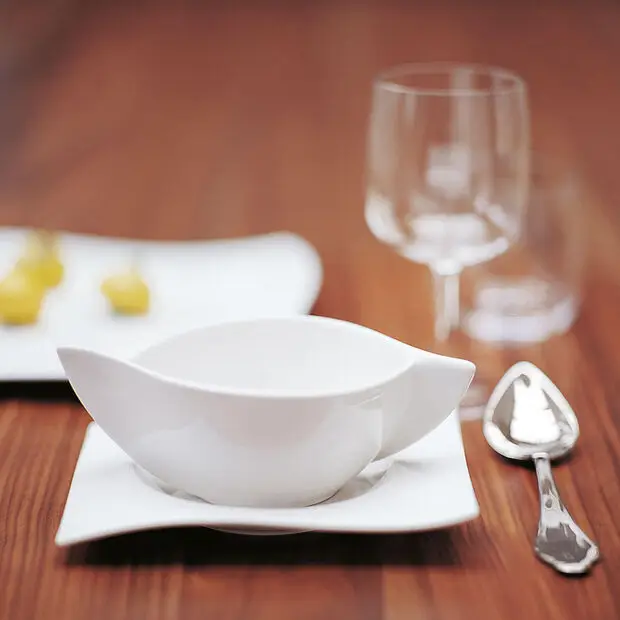 Eleganckie naczynia NewWave w kolorze czystej bieli przekonują nietypowym wzornictwem, dzięki któremu jego kształty zyskują wyrazisty charakter. Przejrzysty całościowy obraz pozostawia przy tym wiele miejsca na osobiste akcenty na nakrytym stole. Wzór, który został już wyróżniony jako modne naczynia roku, już od dawna jest prawdziwym bestsellerem.