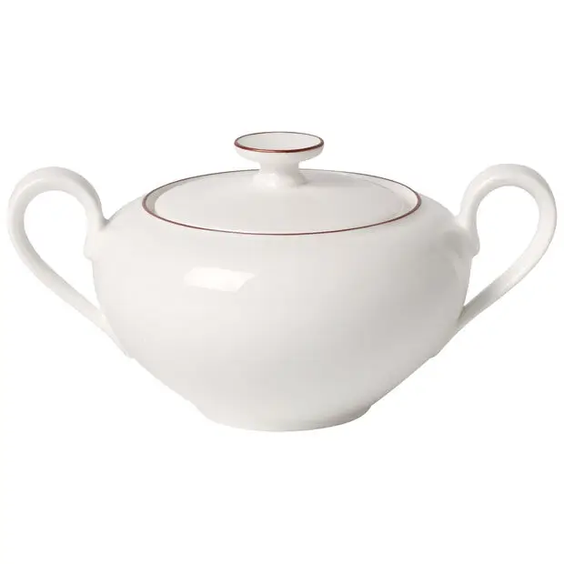 Cukiernica o pojemności 350 ml z linii Anmut Rosewood od Villeroy & Boch z delikatnym różowym akcentem na kostnej porcelanie Premium, pięknie prezentuje się na stole.
