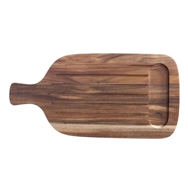 Duża drewniana taca z drewna akacjowego może zarówno służyć do serwowania przystawek jak i krojenia pieczywa.