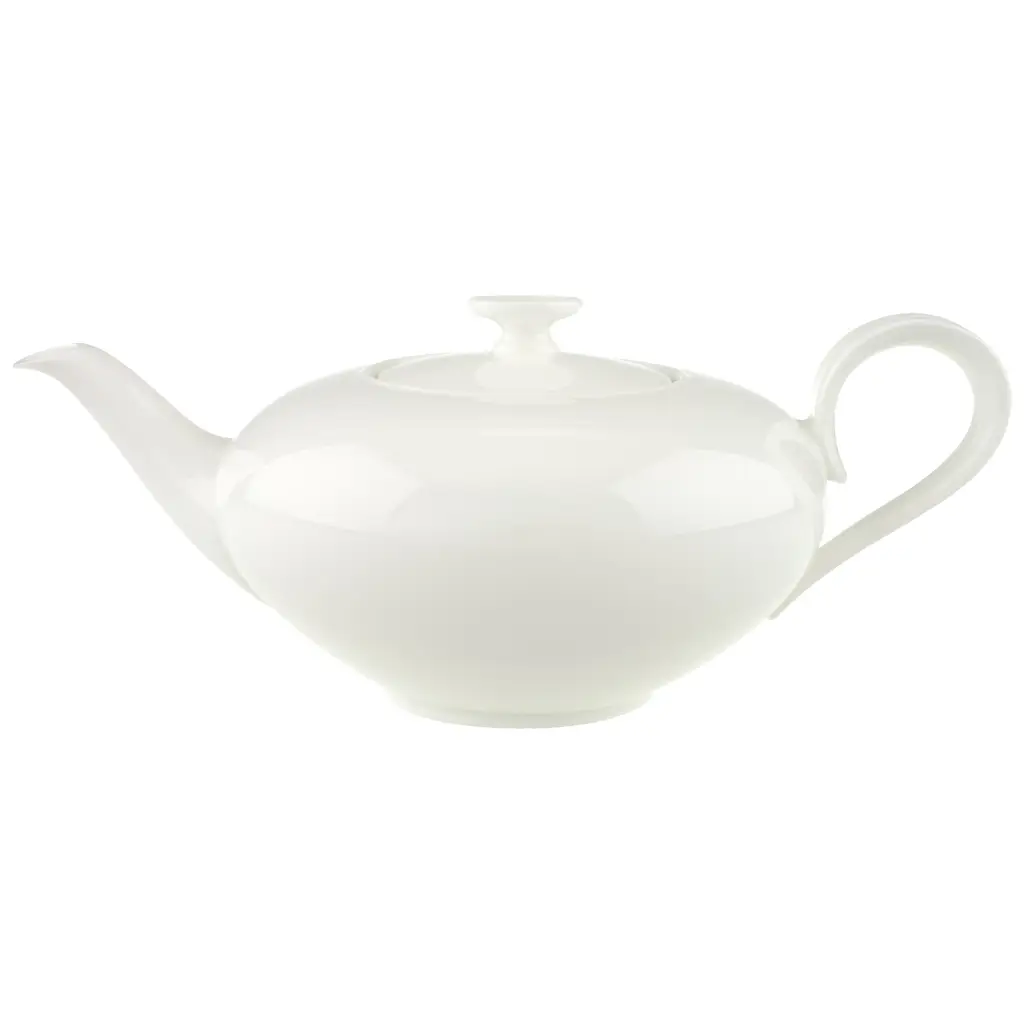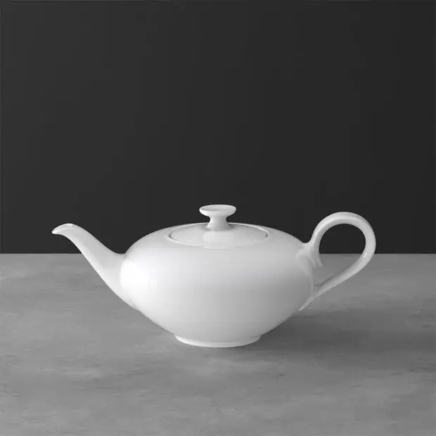 Dzbanek do herbaty o pojemności 0,8 litra z linii Anmut od Villeroy & Boch to elegancki odcień bieli kostnej porcelany Premium, który wpasowuje się bez problemu w każdą dekorację stołu.