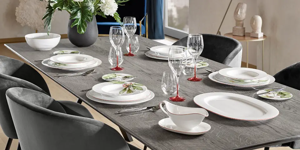 Kolekcja Anmut od niemieckiej firmy Villeroy & Boch nawiązuje do pełnych wdzięku kształtów naczyń, zaprojektowanych w latach 50-tych XX wieku. Kształty te przekonują swoją powściągliwością, płynnością i harmonią. W połączeniu z równie skromnym wzornictwem powstaje szlachetny, zredukowany styl wysokogatunkowej porcelany.