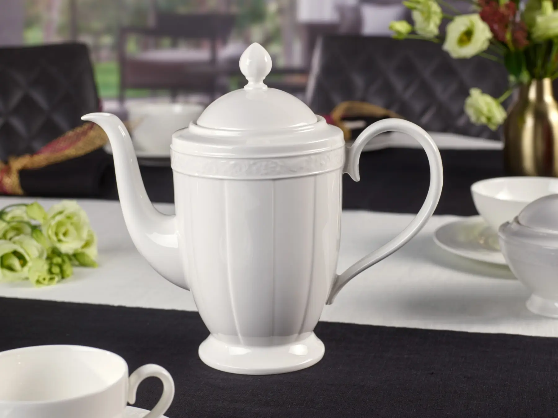 Tradycyjny dzbanek do kawy o pojemności 1,2L będzie idealny do zastawy stołowej na 6 osób. Posiada delikatną, minimalistyczną formę zdobioną reliefem na krawędzi. Z całego fasonu najlepiej odzwierciedla stylistykę antyku i klasycyzmu. Został wykonany z najwyższej jakości porcelany Premium z której słynie marka Villeroy&Boch. Powściągliwa forma wpasuje się zarówno do tradycyjnych jak i nowoczesnych wystrojów. Elegancki fason White Pearl jest odzwierciedleniem ekskluzywnego stylu życia.