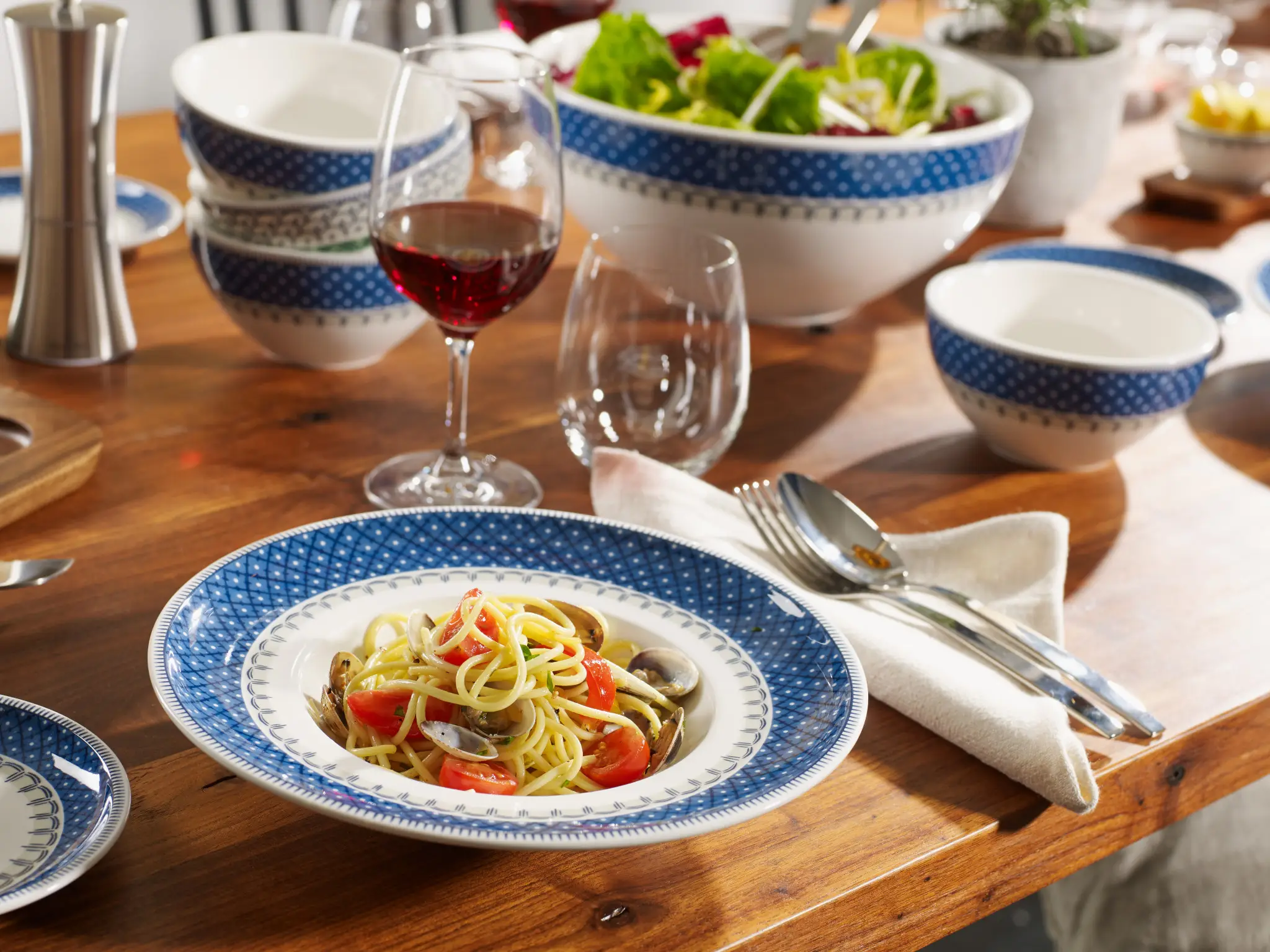 Połączenie nowoczesnych form porcelany Artesano Original i efektownego włoskiego wzoru sprzed niemal dziesięciu wieków dało kolekcję Casale Blu Villeroy & Boch. Naczynia wykonane z porcelany premium zostały ozdobione dekorem nawiązującym do majoliki – ceramiki wytwarzanej od XII stulecia w Umbrii. Subtelne geometryczne wzory w pogodnym niebieskim odcieniu sprawiają, że zastawa stołowa nabiera intrygującego, a jednocześnie swojskiego charakteru. Kolekcja pomoże zbudować przytulną, sielską atmosferę przy stole, będzie doskonale prezentować się w jadalni urządzonej w rustykalnym stylu.