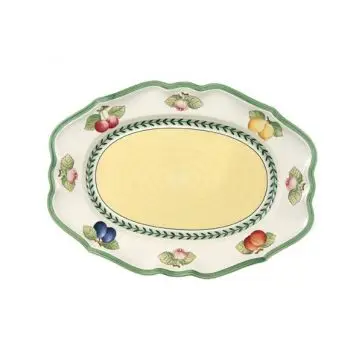 Zastawa French Garden niemieckiej marki Villeroy & Boch to naturalny, świeży i kolorowy – klasyczny styl rustykalny na każdy dzień. Zamień swoją kuchnię w okazały ogród owocowy. Naczynia French Garden są najczęściej wybieranym serwisem do codziennego, domowego użycia.Tradycyjne kształty porcelany pięknie ozdobione owocami, z dekoracjami utrzymanymi w radosnej cytrynowo-zielonej tonacji wnoszą na stół świeżość i grację, zamieniając nawet codzienne posiłki w wysmakowane uczty.
