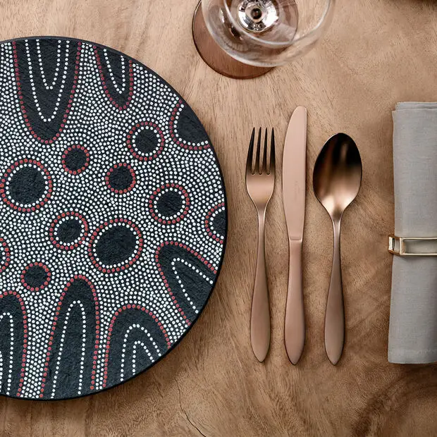 Sztućce w kolorze polerowanej miedzi idealnie pasują do porcelany Manufacture Rock czy Rock Blanc. Miłe w dotyku sztućce wyjątkowo dobrze leżą w dłoni. Eleganckie sztućce z 16-częściowego kompletu dla 4 osób idealnie nadają się do wykwintnych kolacji oraz jako uniwersalne sztućce do codziennego użytku.