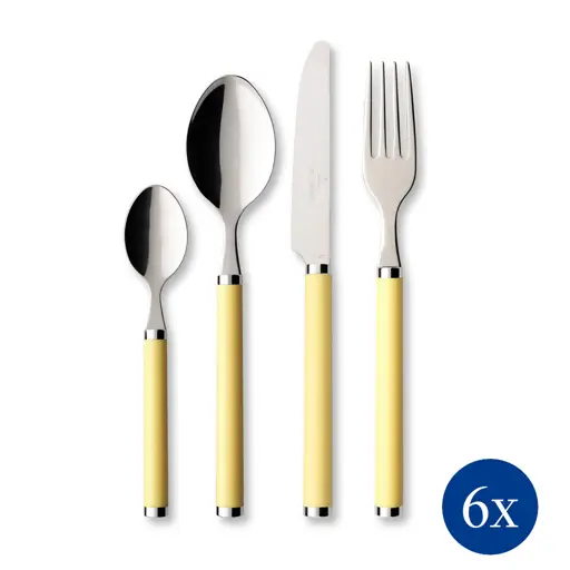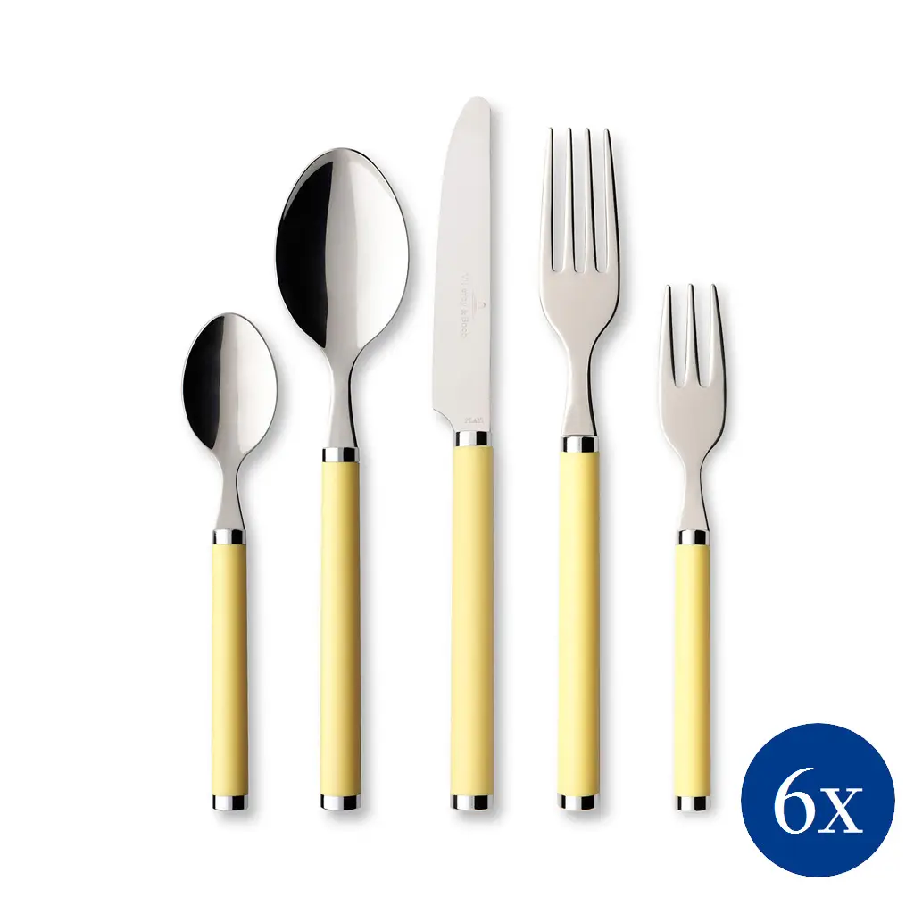 Komplet sztućców dla 6 osób w ilości 30 elementów w kolorze żółtym z linii Play! firmy Villeroy & Boch to część kolekcji z rączkami z kolorowego tworzywa sztucznego, które świetnie pasują do naczyń w stylu country.