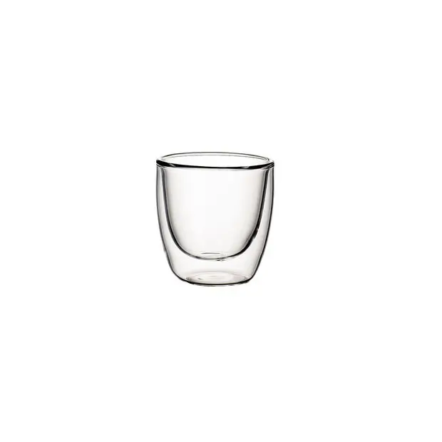 Prezentowany kubek do espresso o wymiarach 6,8 x 6,8 cm (śr. x wys.) i pojemności 60 ml wykonano w całości z odpornego zarówno na niską jak i wysoką temperaturę szkła borokrzemowego. Doskonale nada się na różne okazje, umożliwiając podawanie i picie espresso. Nowoczesny design z podwójnymi ściankami sprawia, że elegancko się on zaprezentuje. Kubek nadaje się do używania w kuchence mikrofalowej. Można go również myć w zmywarce, choć zaleca się mycie ręczne.