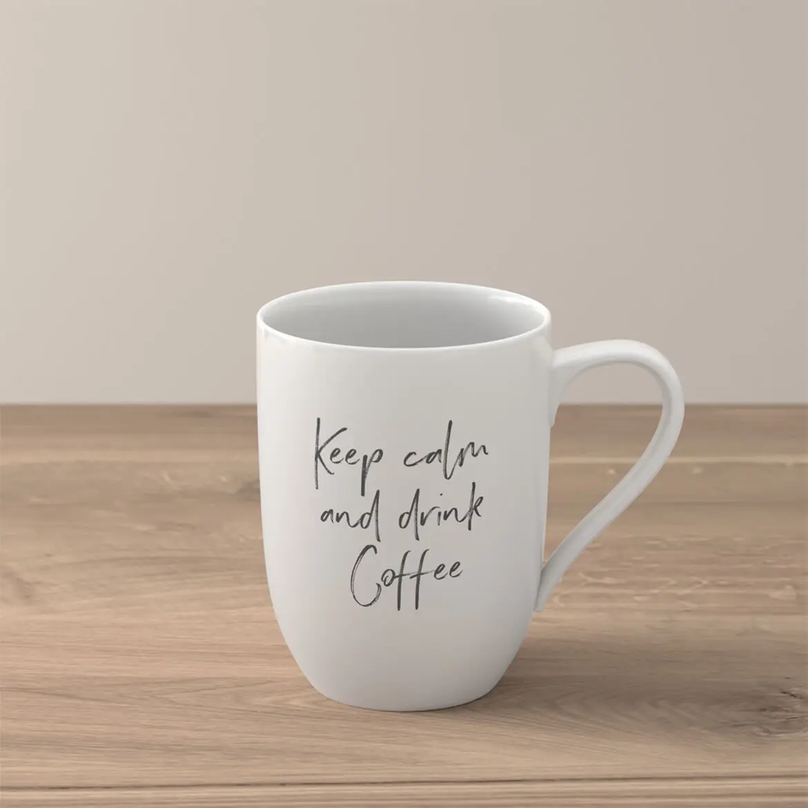 Kubek z serii Statement to idealny pomysł na upominek! Na kubku z jednej strony nadrukowany jest napis „Keep calm and drink coffee” dla miłośnika kawy. Dzięki gładkiej, białej porcelanie pasuje do wielu kolekcji i daje wiele możliwości kombinacji.