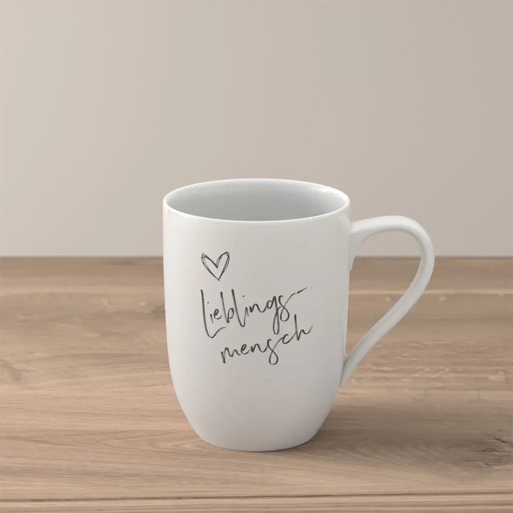 Kubek z serii Statement to idealny pomysł na upominek! Na kubku z jednej strony nadrukowany jest napis „Lieblingsmensch” dla ulubionej osoby. Dzięki gładkiej, białej porcelanie pasuje do wielu kolekcji i daje wiele możliwości kombinacji.