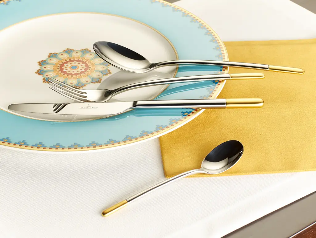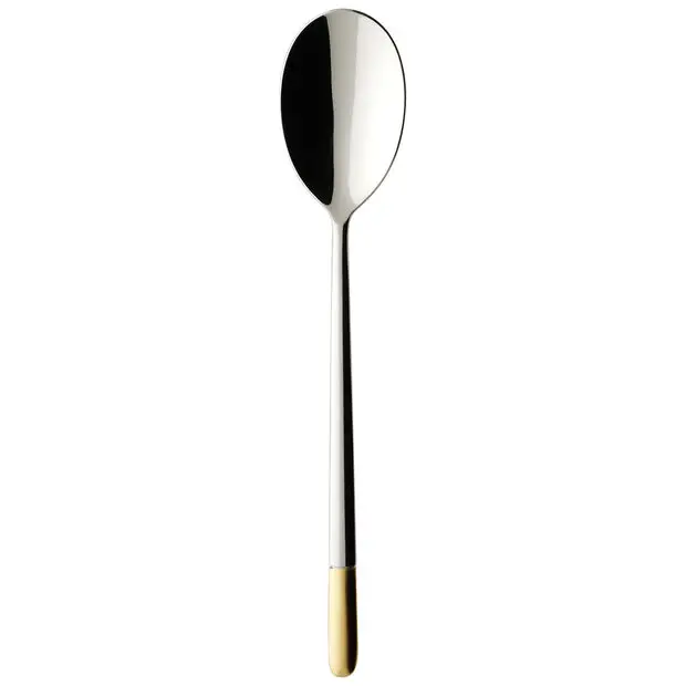 Częściowo pozłacana łyżka obiadowa o długości 211 mm z linii Ella firmy Villeroy & Boch to część kolekcji, której wygląd zawsze sprawia niesamowite wrażenie na stole, dzięki pozłacanym elementom sztućców.