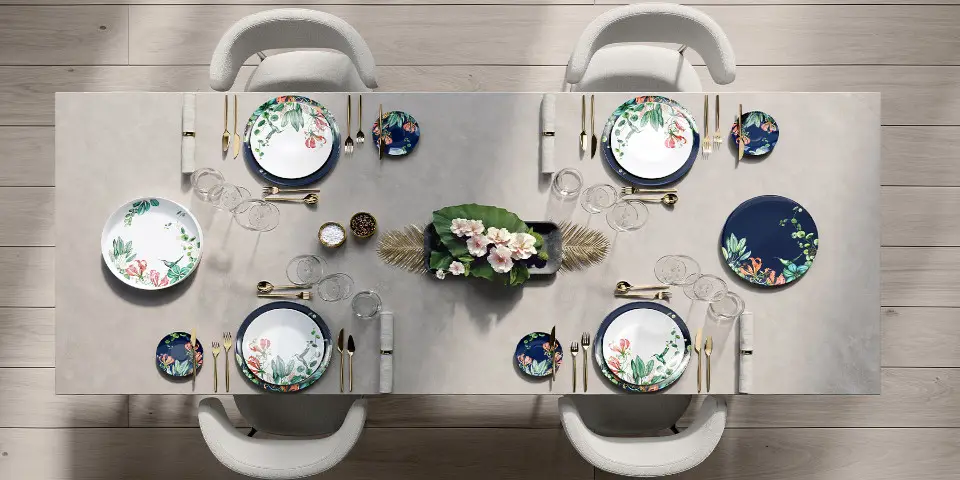 Część kolekcji Avarua z motywami botanicznymi, w delikatnej kolorystyce, idealnie pasuje do Twojego serwisu, który sprawi, że będziesz marzyć o zjawiskowych miejscach.