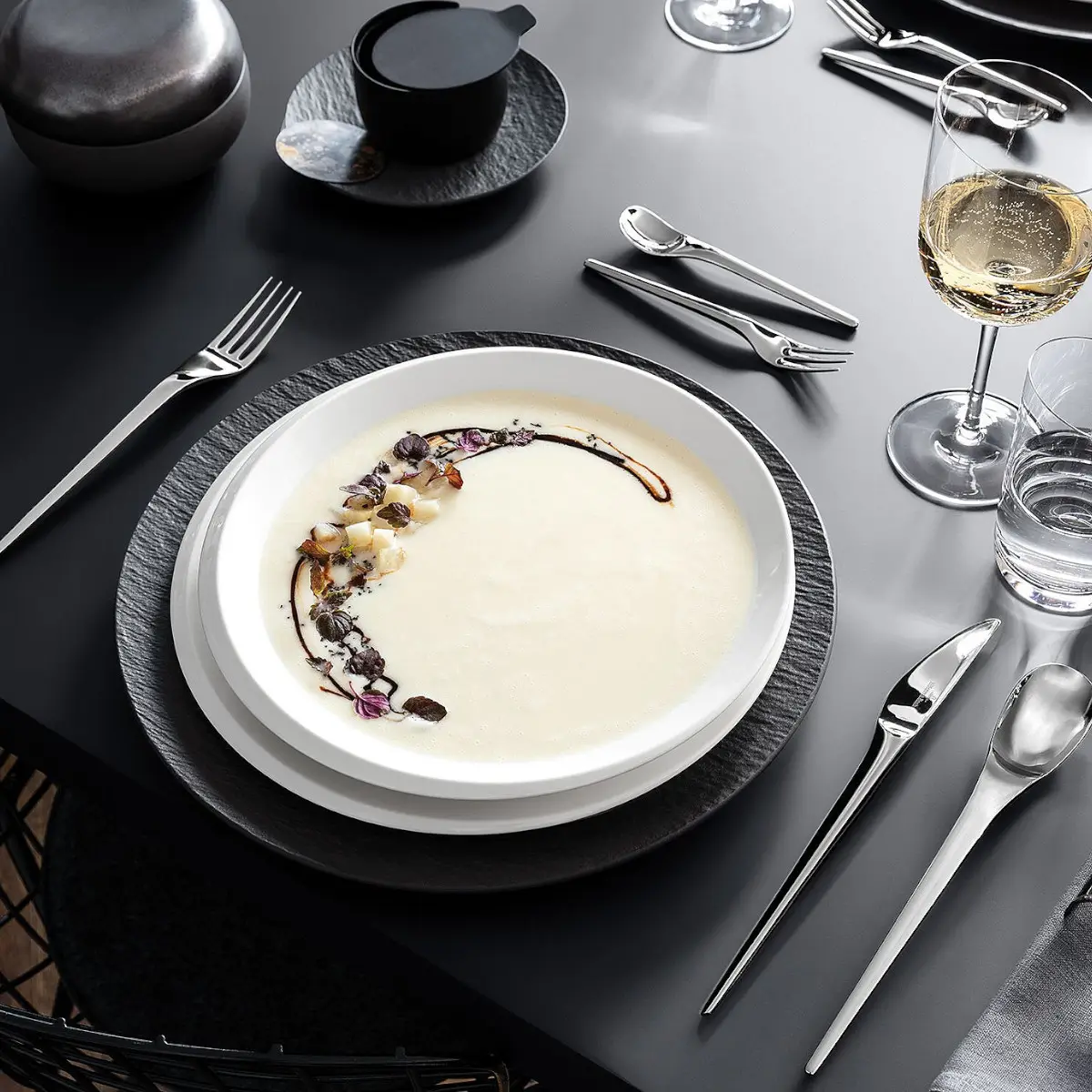 Projekt został zainspirowany księżycem i zachwyca zmniejszonym kształtem w kształcie półksiężyca. Zapierający dech w piersiach wygląd serii podkreśla połysk glazury. NewMoon jest wyrazisty, niekonwencjonalny i czysty. Lśniąca biel sprawia, że szlachetna porcelana premium zapiera dech w piersiach. Unikalny język designu doskonale ukazuje każdy element. NewMoon można idealnie połączyć z pełną kolekcją Manufacture firmy Villeroy&Boch.