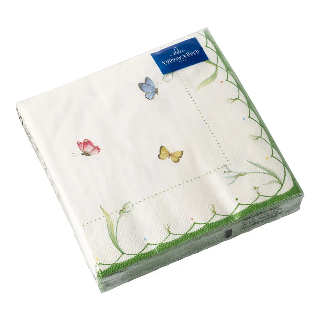 Papierowe serwetki ozdobione motywem z kolekcji Colourful Spring Lunchmarki Villeroy & Boch. Serwetki staną się idealnym uzupełnieniem i ozdobą Twojego stołu. W jednym opakowaniu znajduje się 20 sztuk złożonych serwetek o wymiarach 33 cm x 33 cm