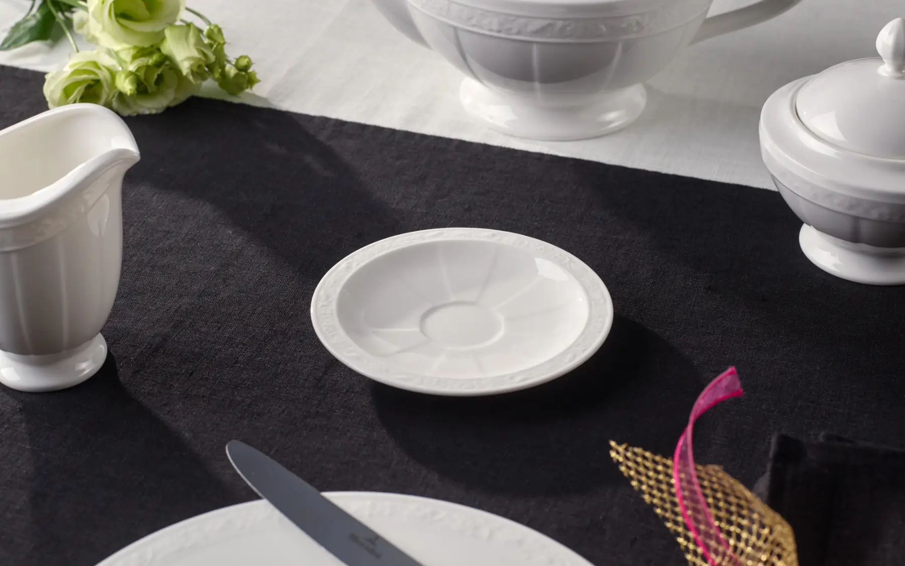 Minimalistyczny spodek z pełnym gracji kwiecistym reliefem przy krawędzi jest idealny w komplecie z filiżanką do espresso White Pearl. Został wykonany z najwyższej jakości porcelany Premium z której słynie marka Villeroy&Boch. Powściągliwa forma wpasuje się zarówno do tradycyjnych jak i nowoczesnych wystrojów. Elegancki fason White Pearl jest odzwierciedleniem ekskluzywnego stylu życia.