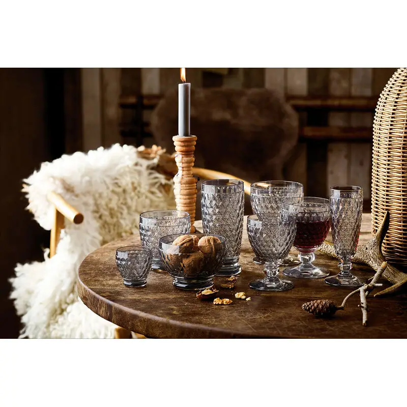 Szklane artykuły z kolekcji Boston Coloured niemieckiej marki Villeroy&Boch wyróżniają się przede wszystkim swoją solidnością, która jest przydatna do użytku w warunkach plenerowych. Te piękne akcesoria z prasowanego szkła kryształowego świetnie nadają się do grillowania w ogrodzie lub na tarasie, a potem można je bez problemu myć w zmywarce do naczyń. Zdobienia w postaci wypukłych rombów tworzą niezwykłe załamania światła, które uwypuklają bogactwo kolorów płynnej zawartości szkła. Nowy modny kolor „smoke” kieliszków i szklanek z kolekcji Boston Coloured dyskretnie ustępuje miejsca innym barwom, idealnie harmonizując nie tylko ze wspaniałym czerwonym winem, ale także z kolorystyką wielu innych kolekcji. I nieważne, czy to kieliszek do białego wina, szampanka czy szklanka na wodę, szkło z kolekcji Boston Coloured dzięki optymalnemu kształtowi doskonale leży w dłoni.