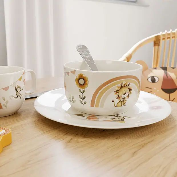 Talerz z porcelany Premium wyróżnia się zabawnymi elementami dekoracyjnymi. Jest optymalnie zaprojektowany dla małych dziecięcych rączek, zapewnia komfort i bezpieczeństwo. Produkt oczywiście nie zawiera szkodliwych substancji i można go myć w zmywarce oraz stosować w kuchence mikrofalowej. Odkryj wesoły asortyment dziecięcy w modnym stylu „Boho” już teraz!