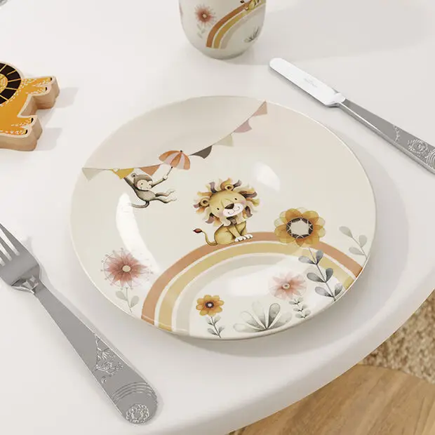 Talerz dla dzieci o średnicy 22 cm z kolekcji "Roar like a lion" marki Villeroy & Boch to uroczy i funkcjonalny element zastawy stołowej, który sprawi, że posiłki będą jeszcze bardziej przyjemne dla najmłodszych. Inspiracją do stworzenia tej kolekcji był dynamiczny świat dzikiej afrykańskiej sawanny, co nadaje talerzowi wyjątkowego charakteru i zabawnego wyglądu.