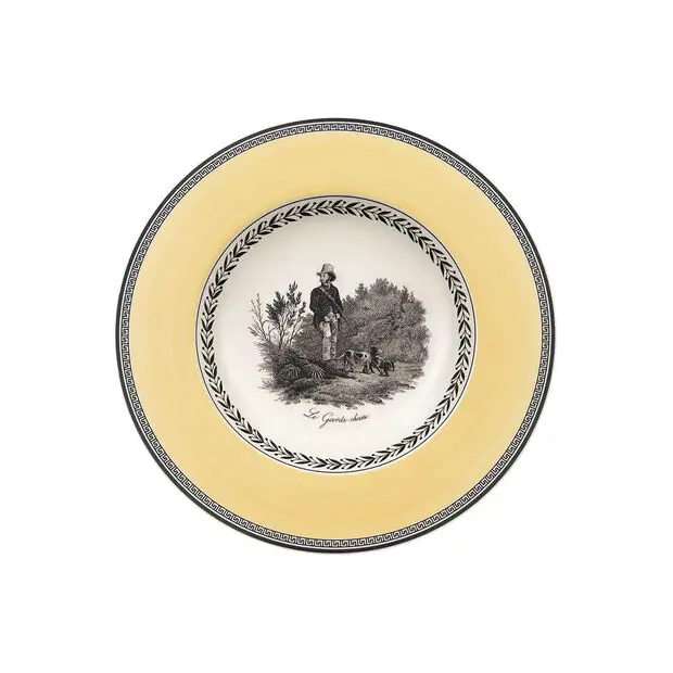 Talerz głęboki o średnicy 24 cm z kolekcji Audun Chasse jest częścią wiejskiego serwisu od firmy Villeroy & Boch. Dekor wzorowany na rysunkach sprzed 200 lat przyciąga wzrok podczas spotkań towarzyskich. Produkt jest doskonałym uzupełnieniem kolekcji Audun (Femme, Promenade, Fleur oraz Chase).